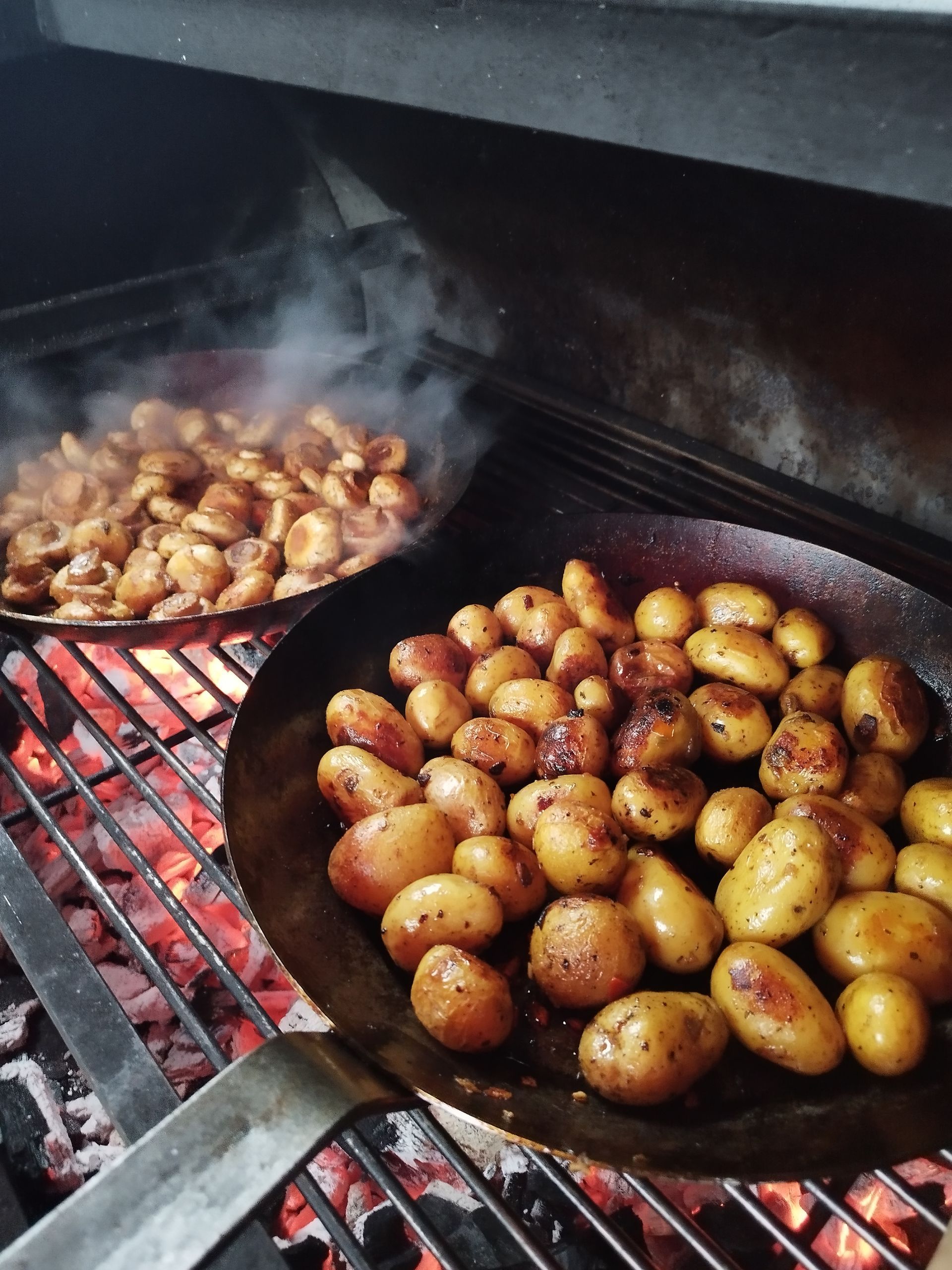 - Grillgemüsepfanne in Olivenöl und Knoblauch geschwenkt
